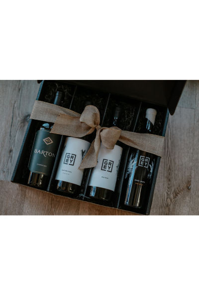 A Tinsel Tied Gift Box Containing: 2024 Landslide, 2022 Big Bad, 2021 Instinctual, 2021 Soul Mate Red