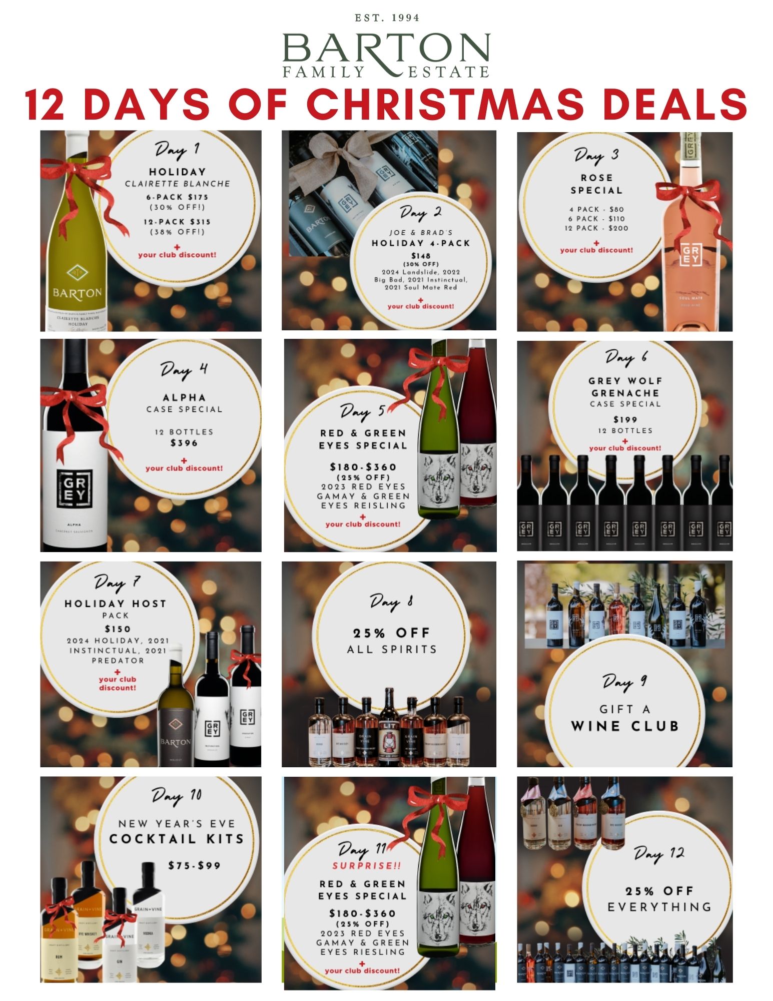 We are thrilled to announce our 12 Days of Christmas Deals! Please browse the hand-selected specials. Joe, Jenny and the team have curated holiday gift packs, case discounts and more. We hope you find something perfect for you or a loved one!